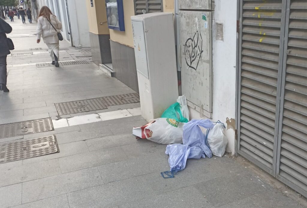 La acumulación de residuos vuelve a ser visible a primera hora de la mañana en calles comerciales como Calle Ancha, pese a las denuncias realizadas semanas atrás